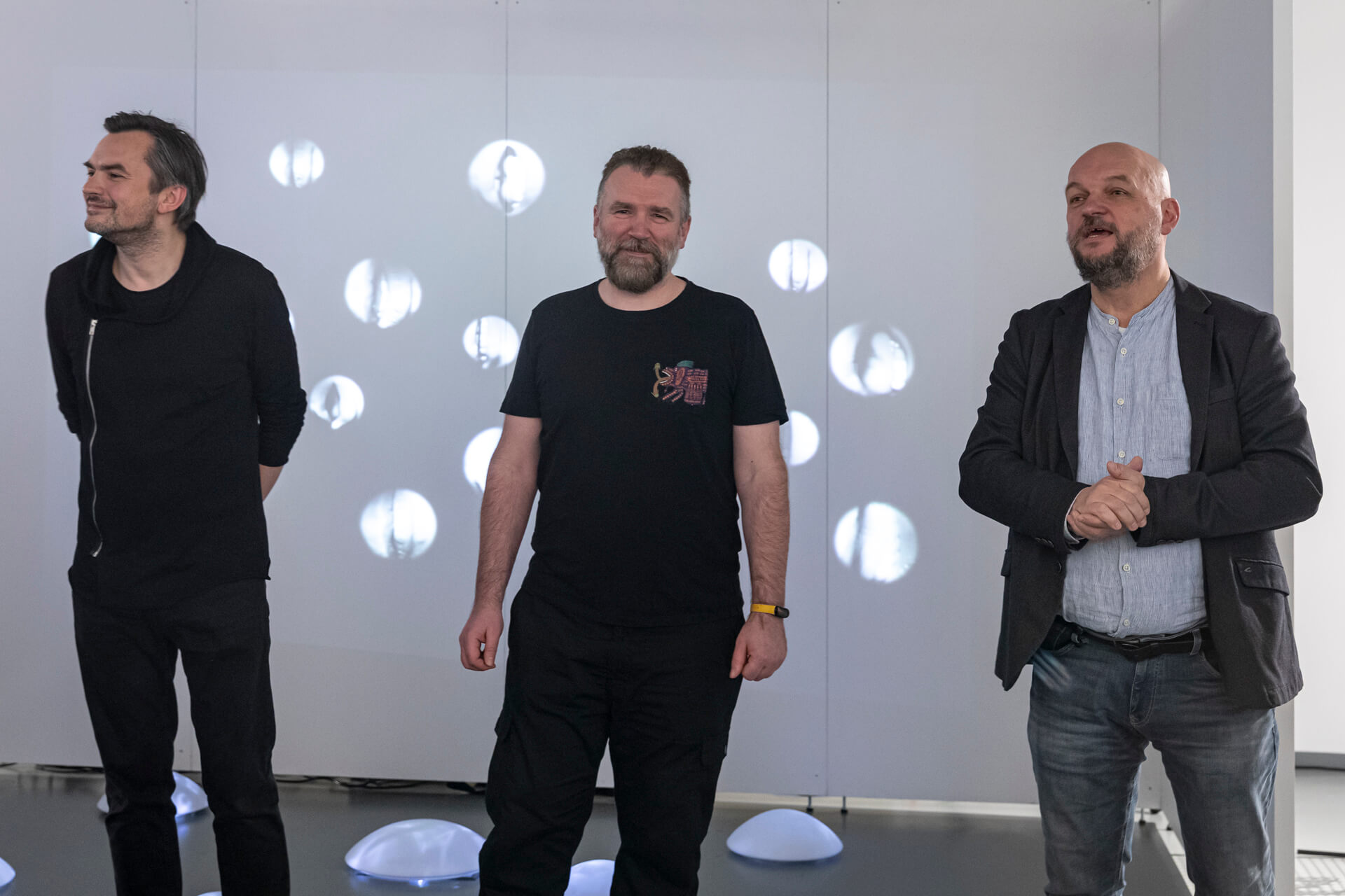 “The exhibition is the result of creative approaches that explore the liminal moments of human encounters with technology, where their own experiences intertwine. The works show the influence of contemporary tools on human perception, communication, and emotions, thus drawing attention to the ambivalent nature of today’s reality,” explains exhibition curator Michał Pietrzak. Together with Vladimír Kovařík, Tomasz Dobiszewski, and Marek Grzyb, dean of the Faculty of Media Arts at the Academy of Fine Arts in Wrocław, they gave the opening speech at the festive vernissage.
